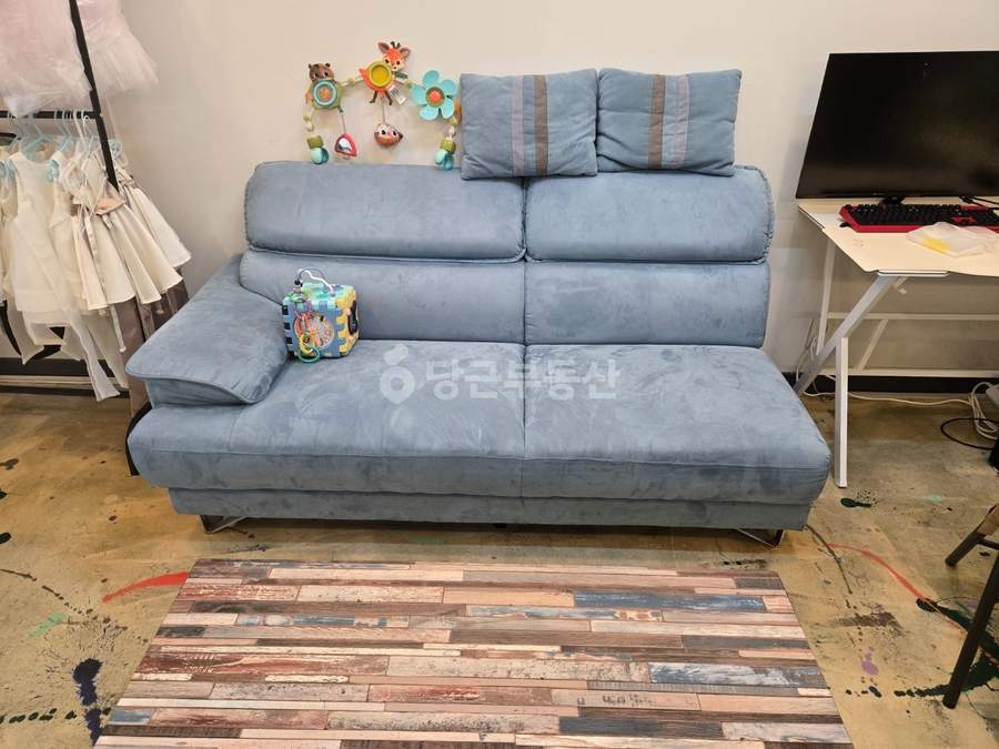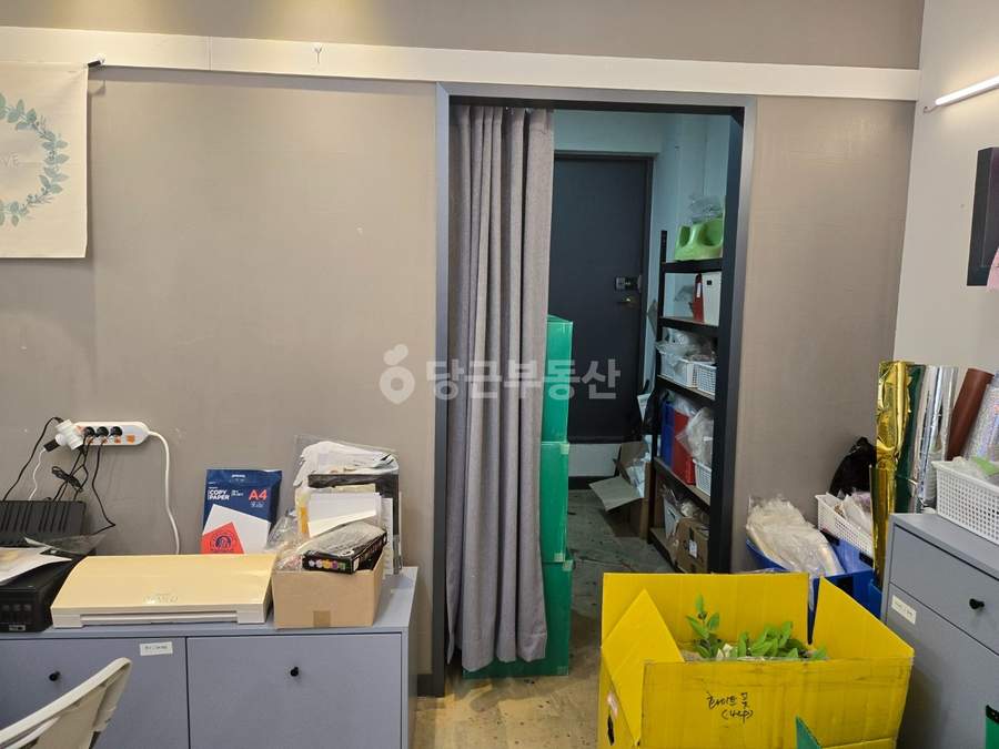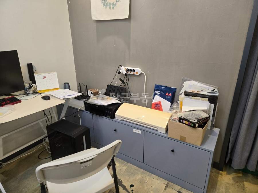 내부는 짐 정리 시 넓고 깔끔한 공간 활용이 가능합니다. 특히 사무실, 공방, 뷰티숍 등으로 추천하며, 음식점의 경우 협의가 필요합니다. 에어컨, 가구, 소파, 냉장고, 커튼 등 기본적인 집기들이 포함되어 있어 초기 비용 부담을 줄일 수 있습니다. 또한 바닥과 조명 공사가 완료되어 있어 즉시 영업 시작이 가능합니다.