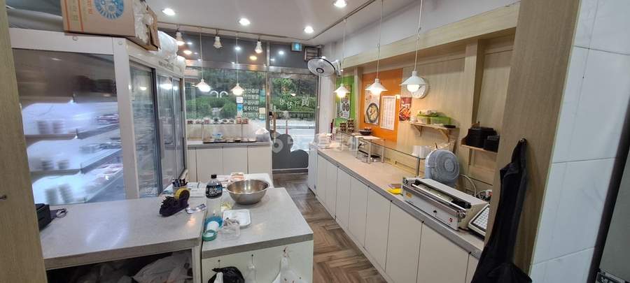 매장 내부에는 반찬가게 운영에 필요한 주요 시설들이 갖춰져 있습니다. 내동 5칸 서랍 냉동고, 아이스크림 냉동고, 4칸 냉장고 냉동고, 화구 3개가 설치되어 있으며, 이 외에도 다양한 부속 주방용품들이 포함되어 있어 초기 투자 부담을 줄일 수 있습니다. 시설이 완비되어 있어 바로 사업을 시작할 수 있는 장점이 있습니다.