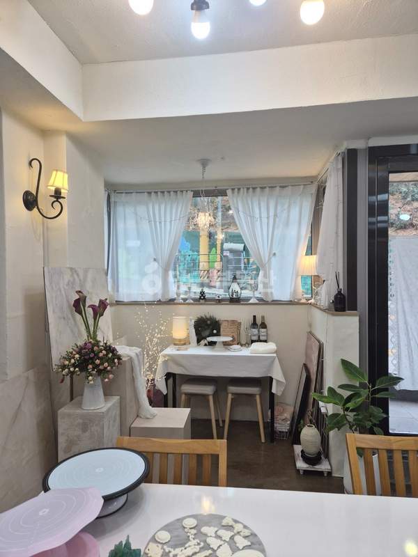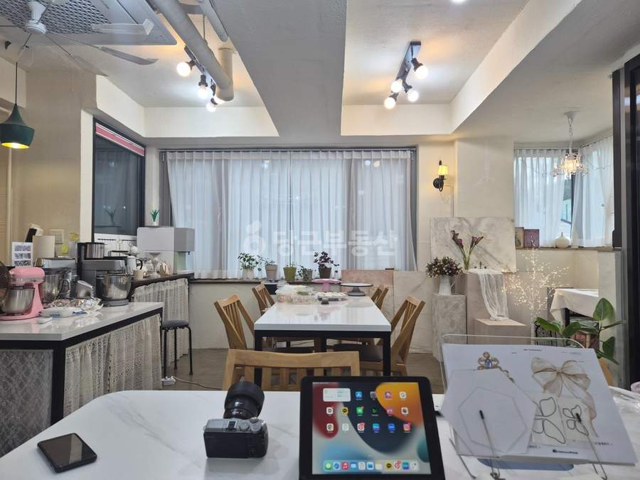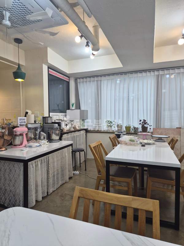 내부는 기본적인 인테리어 및 필요한 시설 설치가 완료되어 있습니다. 천장형 냉난방기, 냉장고, 테이블, 식기세척기가 기본 옵션으로 제공됩니다. 추가로 1년 정도 사용한 얼음정수기는 명의 이전이 가능합니다. 개인적으로 사용하는 물건(반죽기, 꽃냉장고, 개인 소도구, 촬영 도구, 자재)은 매도인이 가져갈 예정이므로, 새로 시작하는 사업의 컨셉에 맞춰 공간을 자유롭게 활용할 수 있습니다.