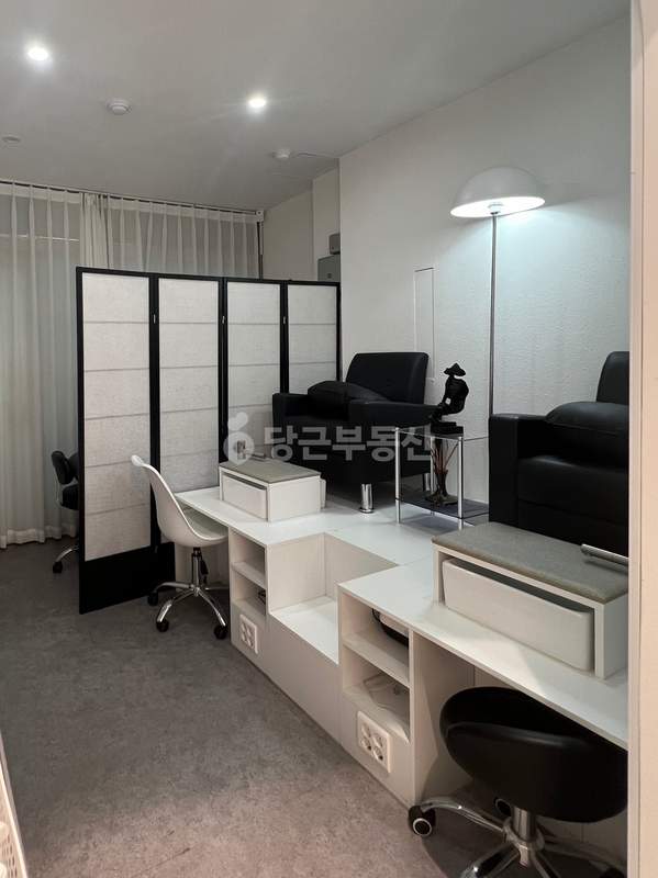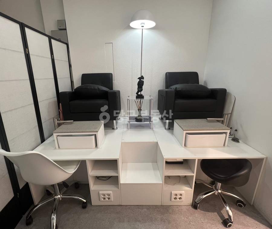 현재 매장 내에는 3인 네일테이블과 세면대가 갖춰져 있으며, 2인 페디의자와 2개의 세족대도 구비되어 있습니다. 속눈썹 시술이 가능한 배드 공간도 충분히 확보되어 있어 네일아트 외 추가적인 미용 서비스 제공에도 용이합니다. 주차는 유료(월 10만원)로 이용할 수 있습니다.