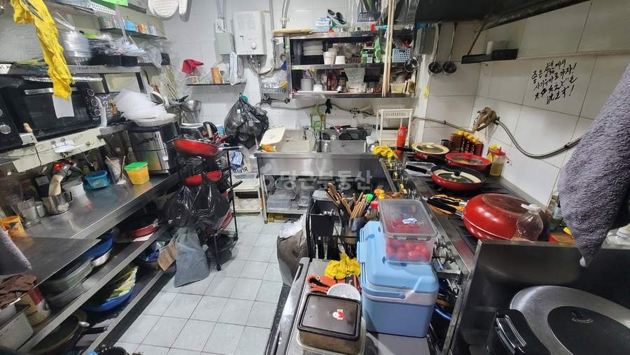 내부 시설로는 물 청소가 편리한 습식 주방이 완비되어 있으며, 도시가스와 5구 간택기, 그리고 대형 국솥 전용의 낮은 대형 화구가 설치되어 있어 다양한 대량 조리에 적합합니다. 쾌적한 주방 환경을 위한 우수한 환기 시설도 갖추고 있습니다. 적정 규모의 홀 공간이 있어 홀 영업을 병행하는 것도 고려해 볼 수 있습니다. 내부에 소형 창고가 있으며, 외부에 별도의 냉장 창고가 마련되어 있어 식자재 보관 및 관리가 용이합니다.