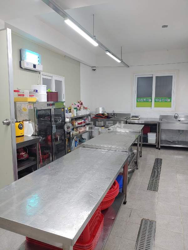 바로 영업 가능한 시설이 완비된 매장입니다. 워크인 냉장고 2개와 냉동고 1개가 설치되어 있으며, 주방시설 또한 완비되어 있습니다. 반찬, 도시락, 전통식품 등 식품 제조 업종에 특히 추천합니다. 사무 공간이나 휴게 공간으로 활용할 수 있는 방이 별도로 있으며, 뒷편에도 물건을 보관할 수 있는 충분한 공간이 있습니다. 주차는 2대에서 3대까지 가능하여 편리하며, 택배 상하차도 용이합니다. 현재 김치, 장아찌 제조 공간으로 사용 중입니다.