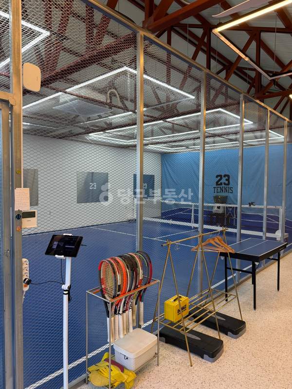 해당 상가는 두 개의 공간으로 구분되어 효율적인 활용이 가능합니다. 약 36평의 제2종 근린생활시설 공간은 현재 실내 테니스 코트로 활용 중이며, 바닥은 17mm 탄성칩 시공 후 우레탄 도포가 되어 있어 관련 업종 입점 시 시설 활용도가 높습니다. 약 13평의 제1종 근린생활시설 공간은 별도 화장실과 전용 출입구를 갖추고 있습니다. 야외 공간은 콘크리트 마감 처리를 통해 관리가 용이하며, 야간 조명과 펜스가 설치된 미니 농구장 및 피클볼 장이 조성되어 있는 점이 특징입니다.