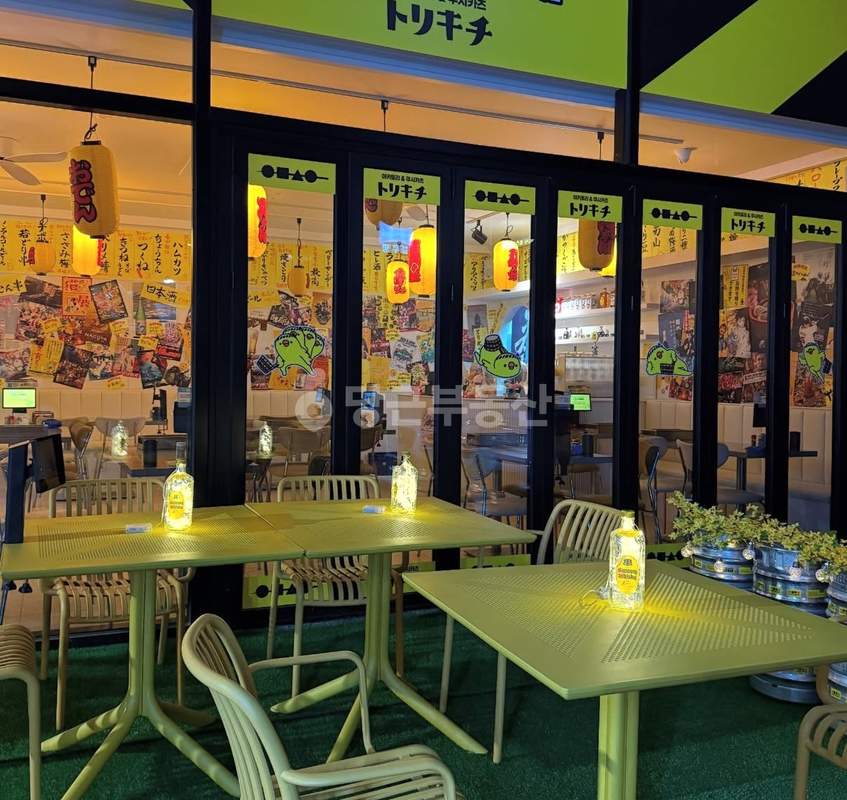 해당 매장의 내부 인테리어와 외부 테라스 시설을 확인할 수 있는 실사진입니다.