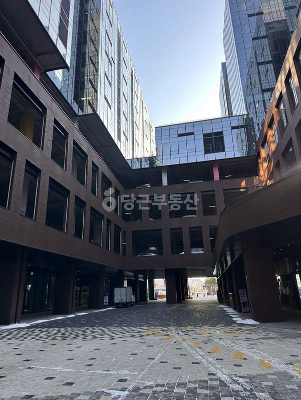 해당 지식산업센터 상가의 내외부 모습과 주변 환경을 담은 실사진입니다.