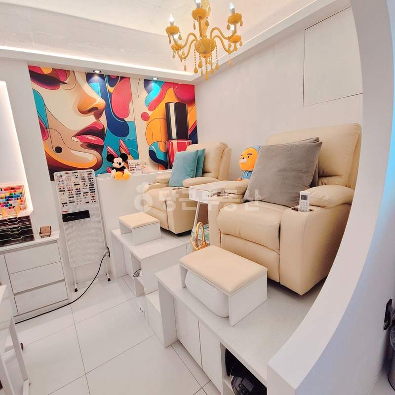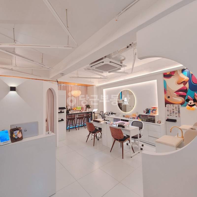 해당 매물은 전용면적 약 15평(공급 20평) 규모로 건물의 2층을 사용하고 있습니다. 내부 구성은 방 2개와 욕실 1개로 이루어져 있으며 속눈썹 시술을 위한 별도의 룸과 창고 공간이 확보되어 있습니다. 냉난방 겸용 시스템 에어컨과 패디 단상 2개, 흡진 네일 테이블 2개 등 필수 시설이 완비되어 있습니다. 특히 관리비가 별도로 발생하지 않아 운영 비용 절감에 유리한 조건입니다.