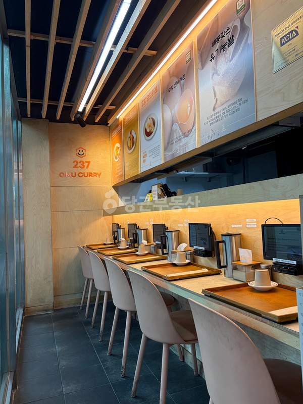 전용면적 20㎡(약 6.1평) 규모로 5인용 다찌형 테이블이 설치되어 있어 공간 효율성이 높습니다. 1.5인 내외의 소규모 인원으로 운영하기 적합하며 배달보다는 홀 방문객 위주로 매출을 창출할 수 있는 구조입니다. 보증금 500만 원에 월세 50만 원이라는 저렴한 임대 조건과 별도의 관리비가 없다는 점이 가장 큰 운영상 장점입니다.